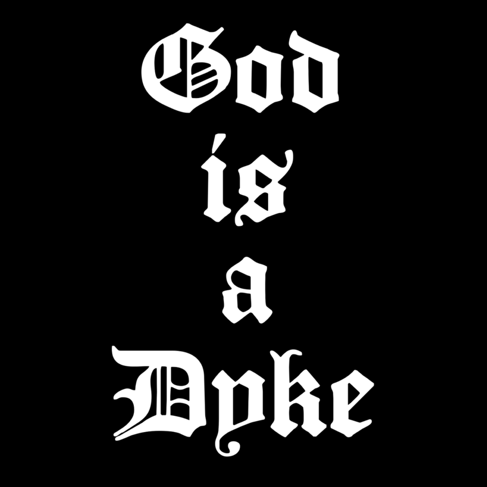 Regular fit gildan tshirt with God is a Dyke design, front and back screen printed